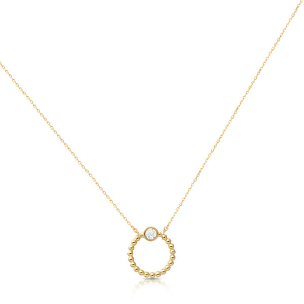 This beautiful 9ct Gold Cubic Zirconia Circle Pendant is given a fashionable edge with its soft curves and entwined links design. Beautifully crafted in UK by DPL International.