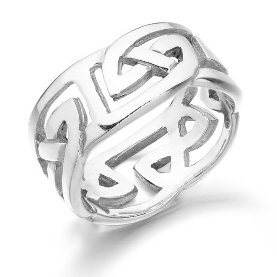 This 9ct Gold Celtic Ring is simple in design with braided Celtic knots. The Celtic Knot, so prevalent in Celtic art and craft because of its complex meaning and simple form, takes shape here as distinctive, delicate jewelry. The graceful curves and circle have multiple meanings in Celtic lore, but the most common is that of never-ending love. The open look of the plaited Celtic knots gives an airy look to the ring while the intricate knots themselves make this Celtic Ring look elegant.