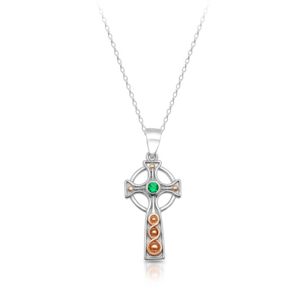 Silver Celtic Cross Pendant with Rose Gold Plating and Studded with Cubic Zirconia.